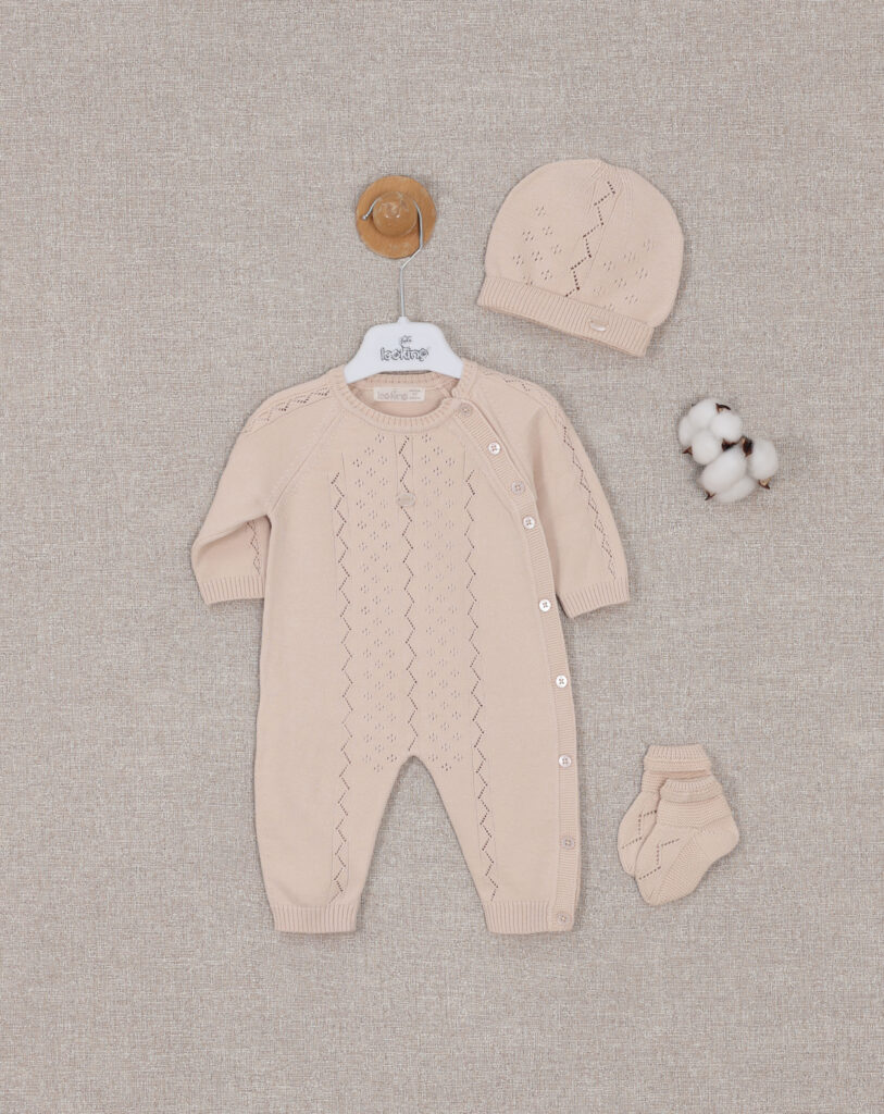 Baby Boy Romper Set Of 3 Pieces – Beige 7451