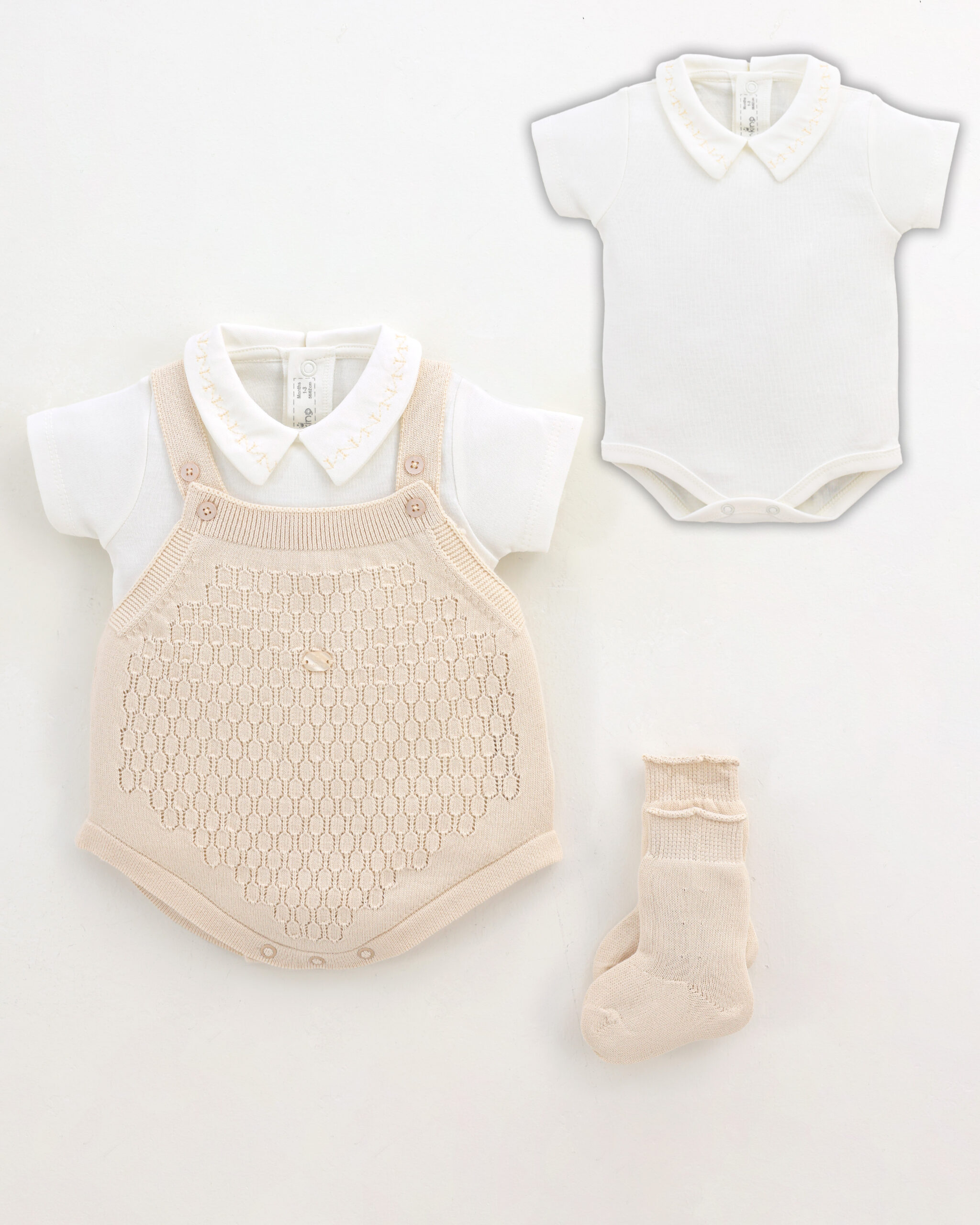 Baby Boy Romper Set Of 3 Pieces – Beige 7161