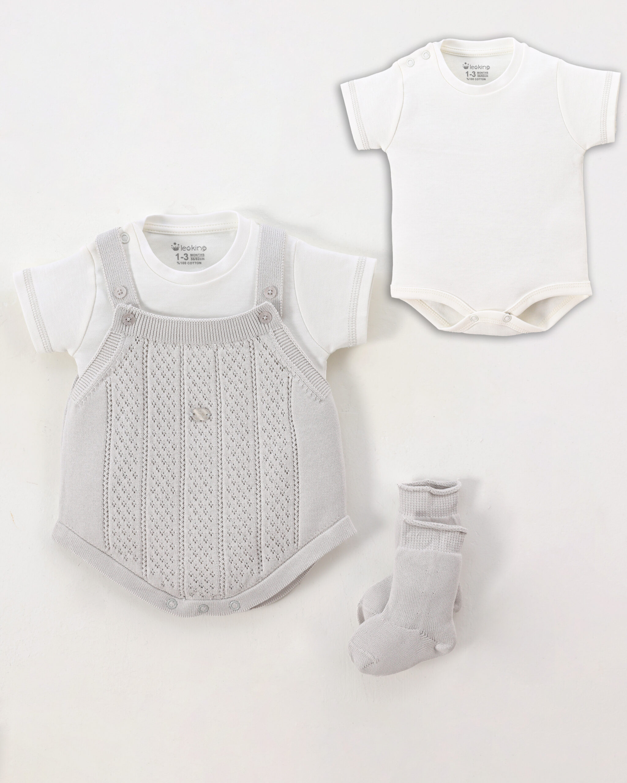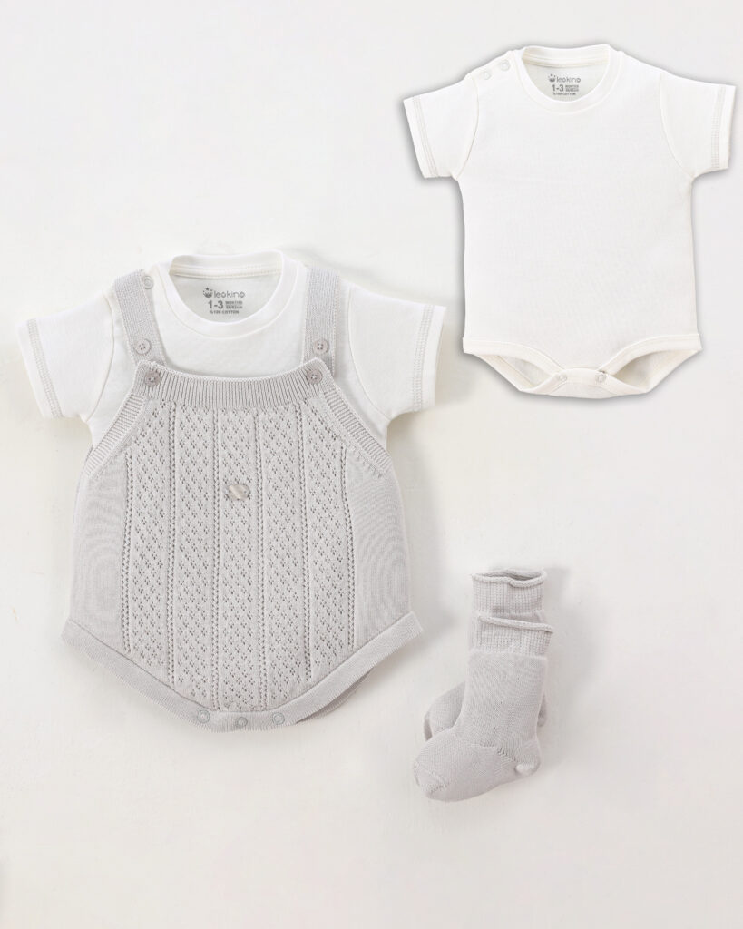 Baby Boy Romper Set Of 3 Pieces – Grey 7162
