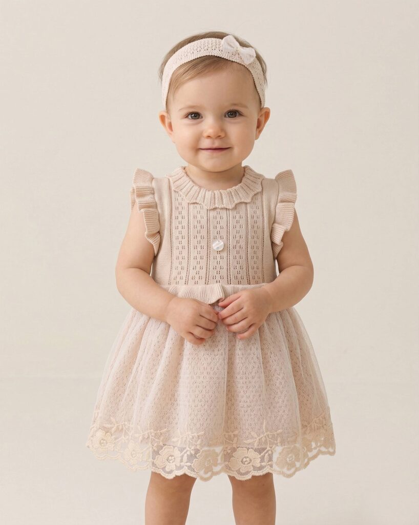 Baby Girl Dress Set Of 2 Pieces – Beige 5382