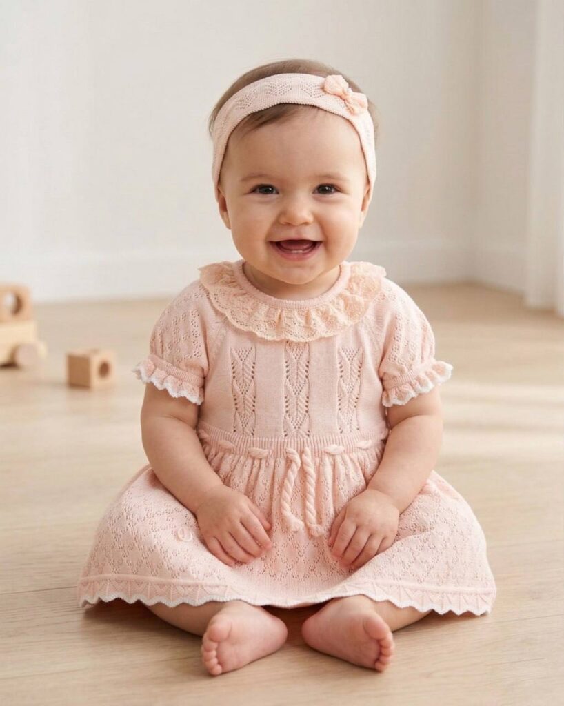 Baby Girl Dress Set Of 3 Pieces – Beige 5383