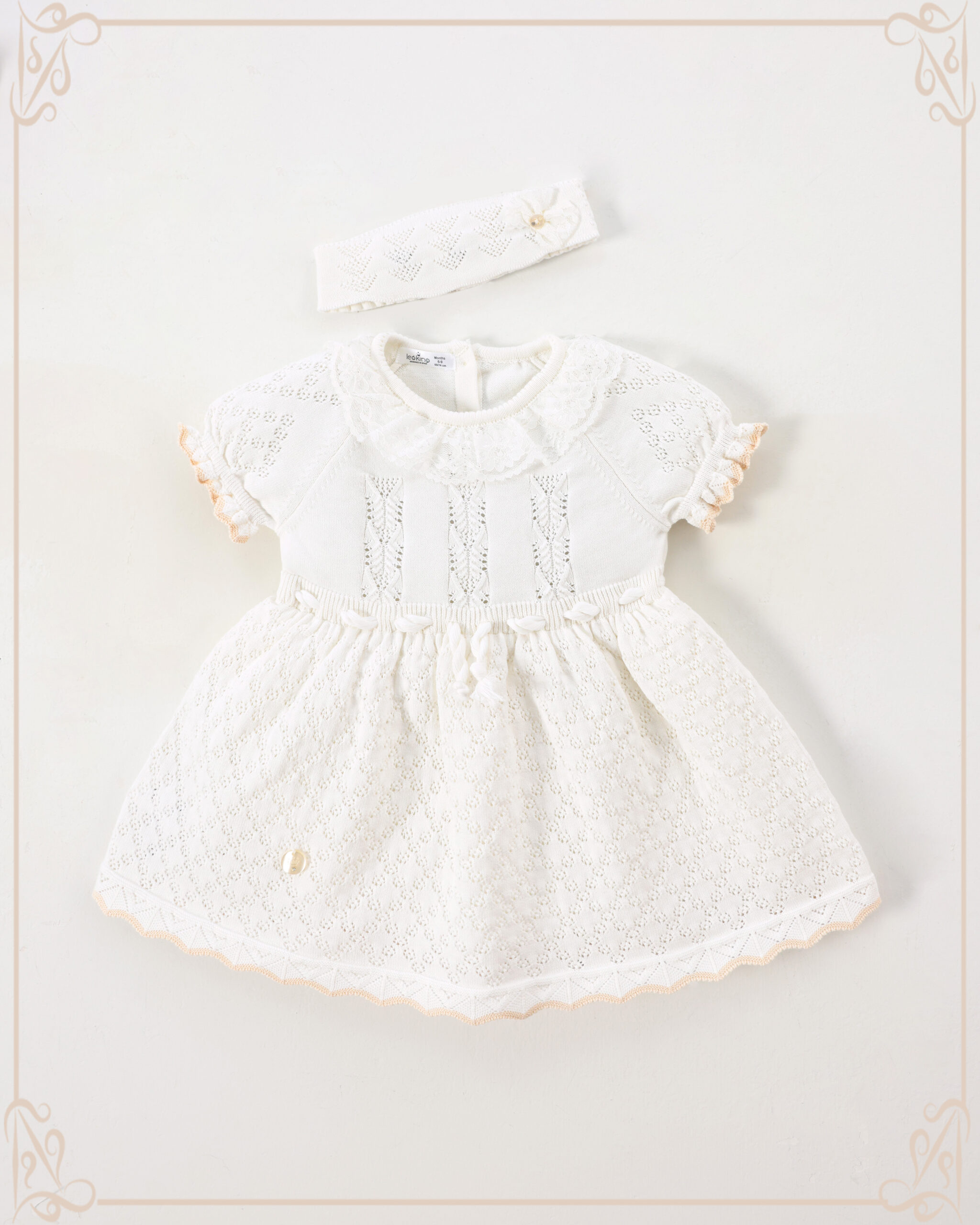 Baby Girl Dress Set Of 2 Pieces – White / Beige 5383