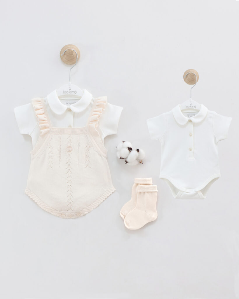 Baby Girl Short Romper Set Of 3 Pieces – Beige 7444