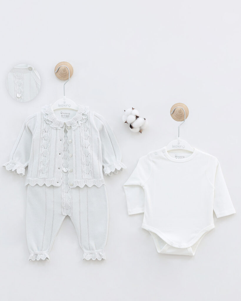 Baby Girl Romper Set Of 3 Pieces – Grey 7443