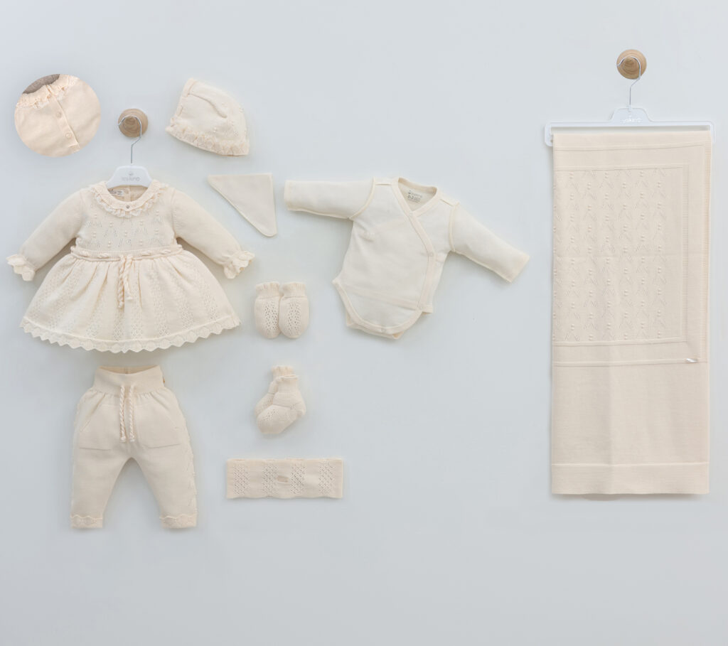 Baby Girl Newborn Set Of 9 Pieces – Beige 3142