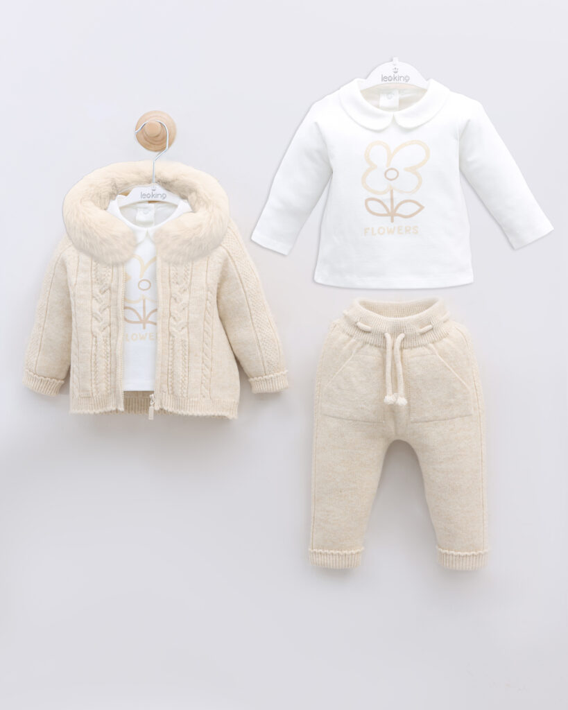 Baby Girl Set Of 3 Pieces – Beige 9589