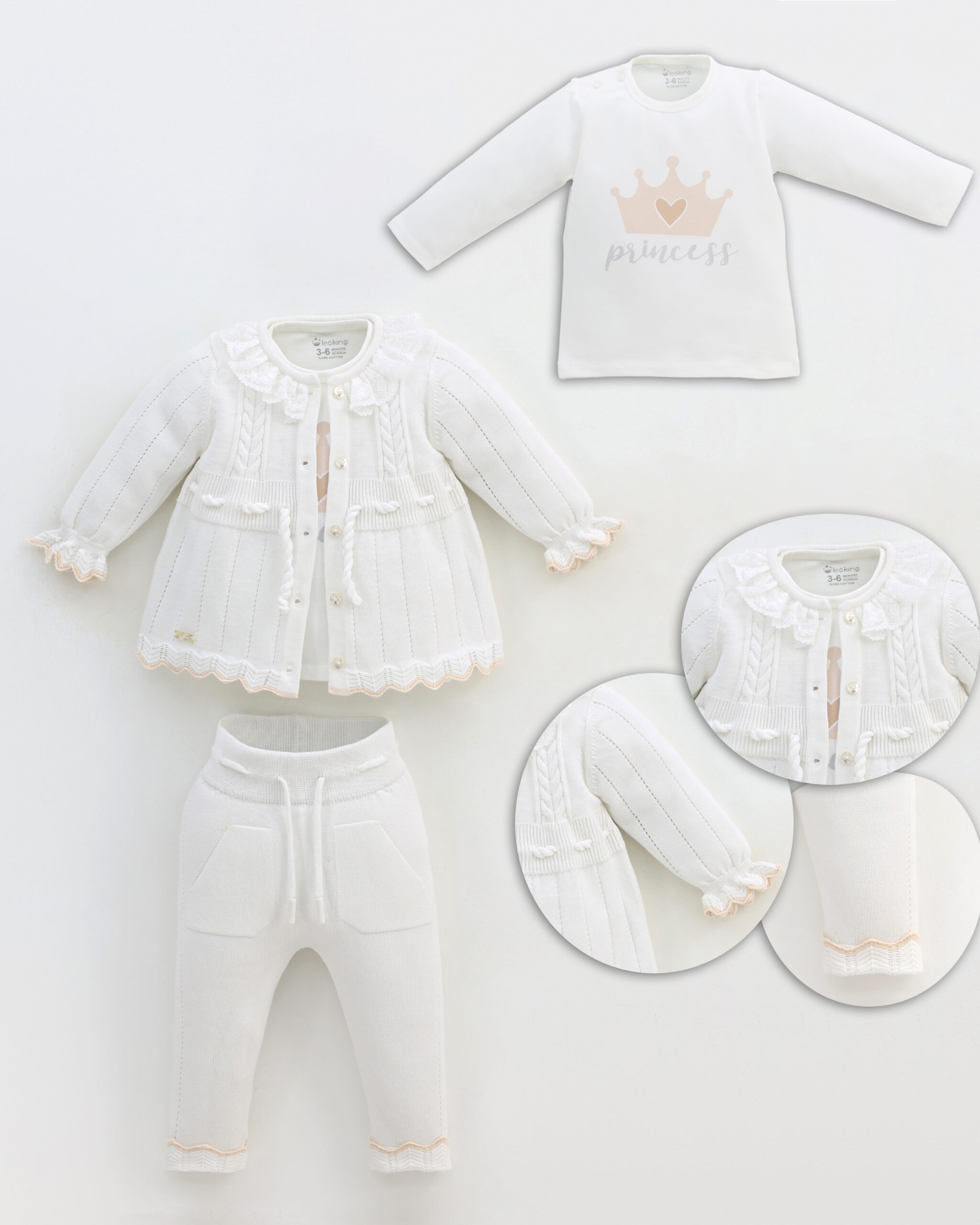 Baby Girl Set Of 3 Pieces – White / Beige 8557